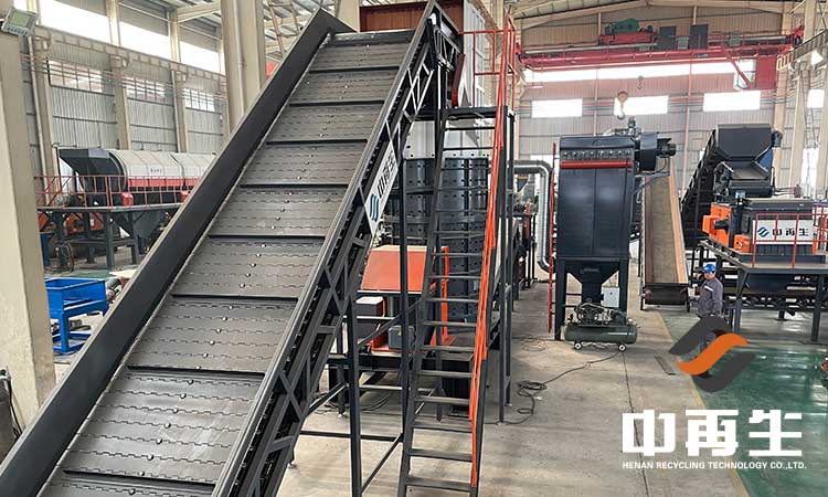 汽車座椅破碎分選線主要是針對汽車座椅進行破碎加工的,經過加工處理后的物料規格統一、密度小、便于儲存運輸。全套設備的作業流程主要是由前端的撕碎機對汽車座椅進行粗碎處理。然后再經過破碎機對物料進行撕扯、捶打、擠壓以達到細碎的效果。最后通過分選設備分離出金屬和非金屬物料。在破碎機后端配備有風力設備和除塵設備,對作業中出現的粉塵進行收集,防治粉塵污染。