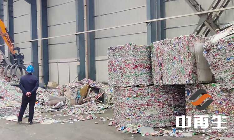 廢易拉罐很薄,在熔煉過程中燒損較大,有的可達10%以上。為提高鋁的熔煉回收率,需盡量減小廢易拉罐的表面積,降低燒損,因此,對松散的經過脫碳之后的廢易拉罐要進行打包壓實。